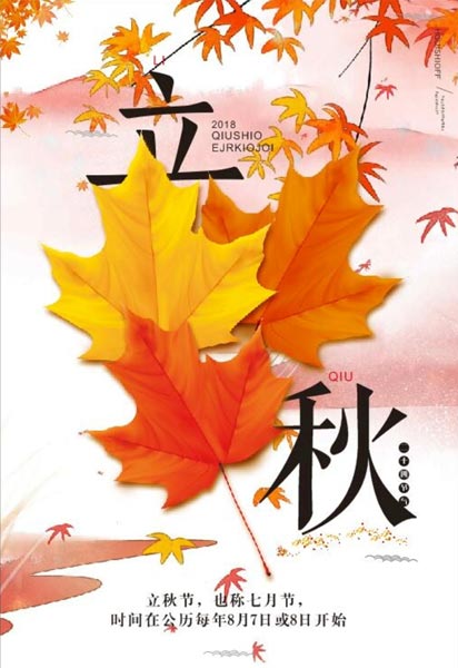 立秋,是農歷二十四節氣中的第13個節氣,更是秋天的第一個節氣,標志著孟秋時節的正式開始:“秋”就是指暑去涼來。到了立秋,梧桐樹開始落葉,因此有“落葉知秋”的成語。從文字角度來看,“秋”字由禾與火字組成,是禾谷成熟的意思。秋季是天氣由熱轉涼,再由涼轉寒的過渡性季節。