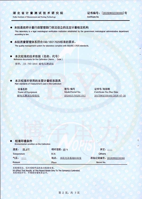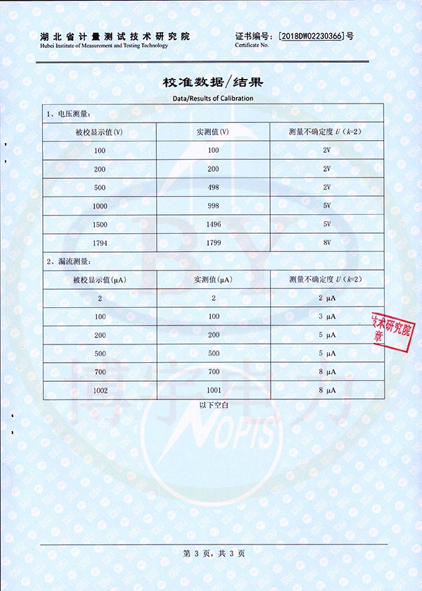 FC-2G防雷元件測試儀校準證書