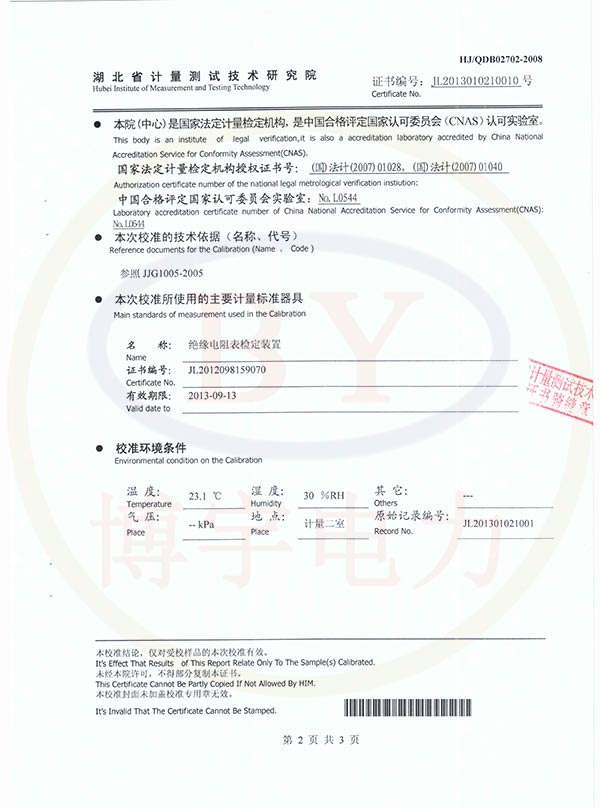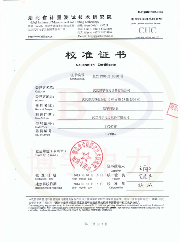 BY2671F數字兆歐表校準證書