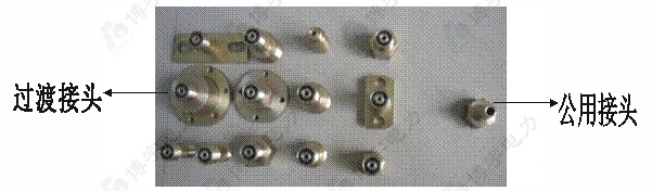 1.到現(xiàn)場(chǎng)后斷開(kāi)與密度繼電器相連的電源,以免損壞校驗(yàn)儀,同時(shí)拆下與密度繼電器相連管頭,接上相應(yīng)的測(cè)量接頭(與共用接頭連接號(hào),共用接頭尾端有活插頭方便測(cè)量管連接),測(cè)量接頭及共用接頭示意圖:
