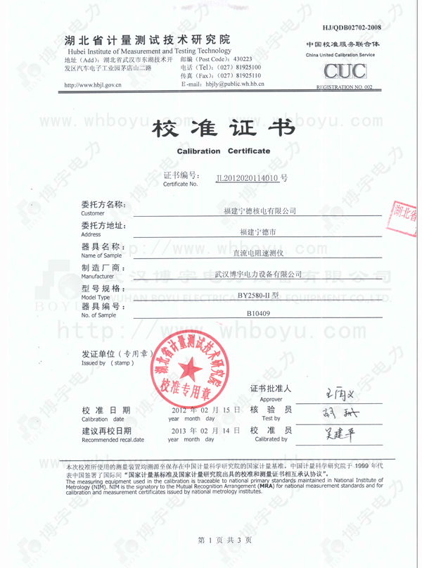 直流電阻速測儀檢定證書