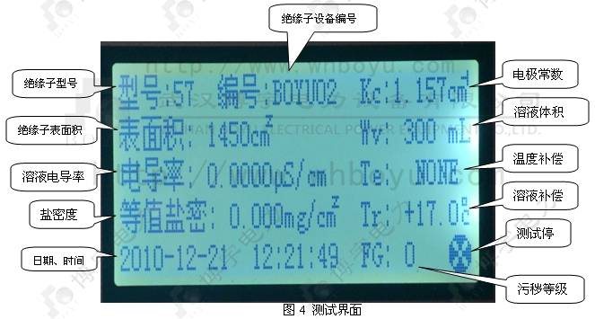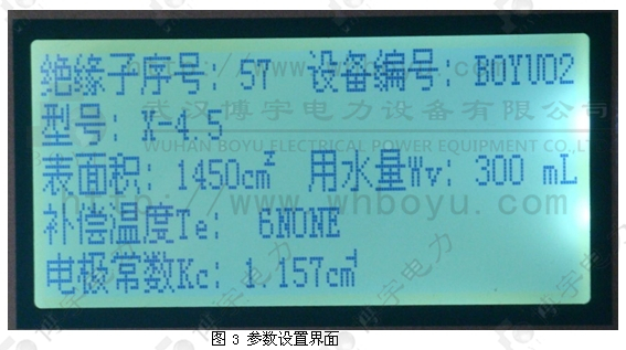 各種型號的絕緣子其表面積有所不同,使用時請輸入測試儀絕緣子的表面積。絕緣子表面積具體取值參照附錄A(常用絕緣子表面積及泄露距離一覽表)。